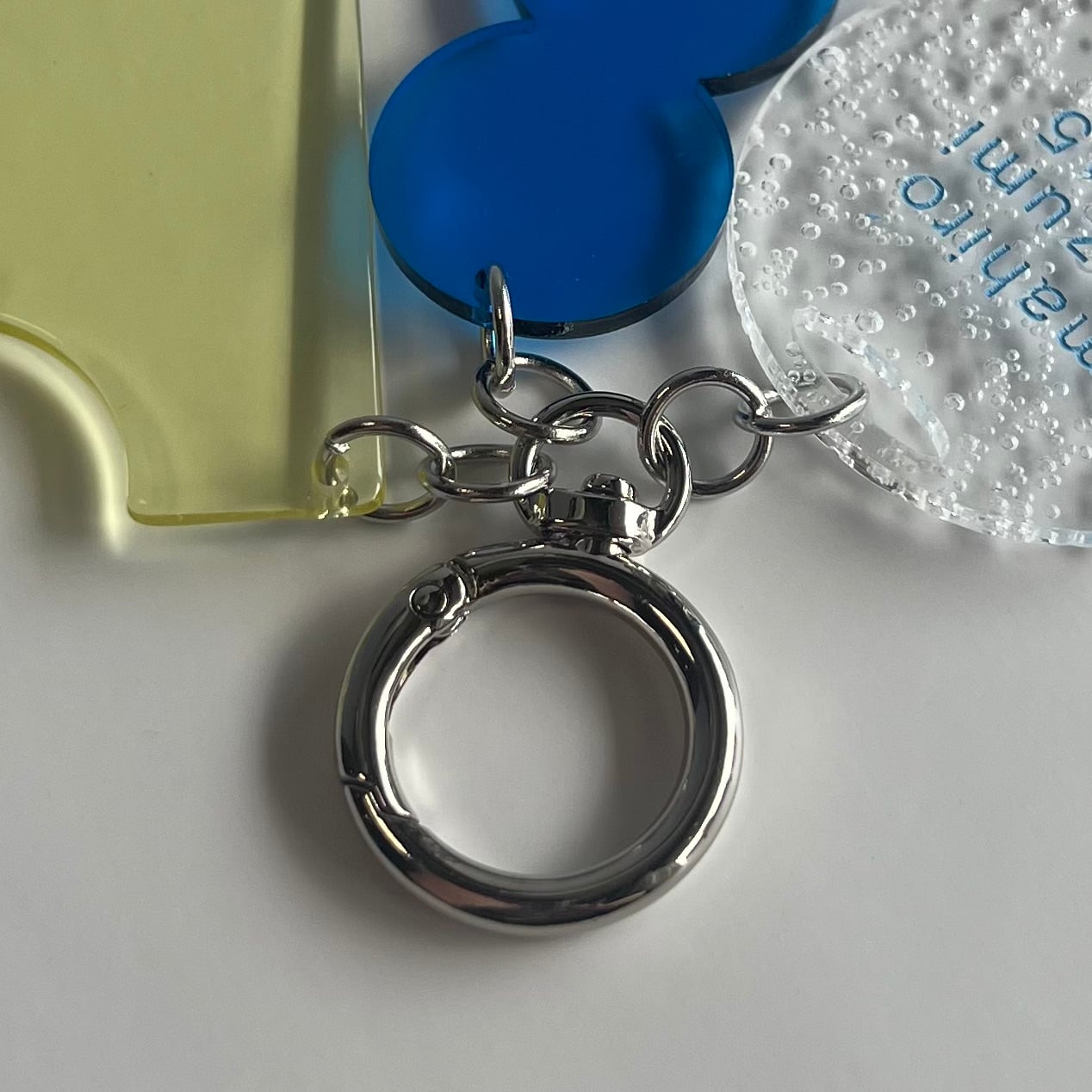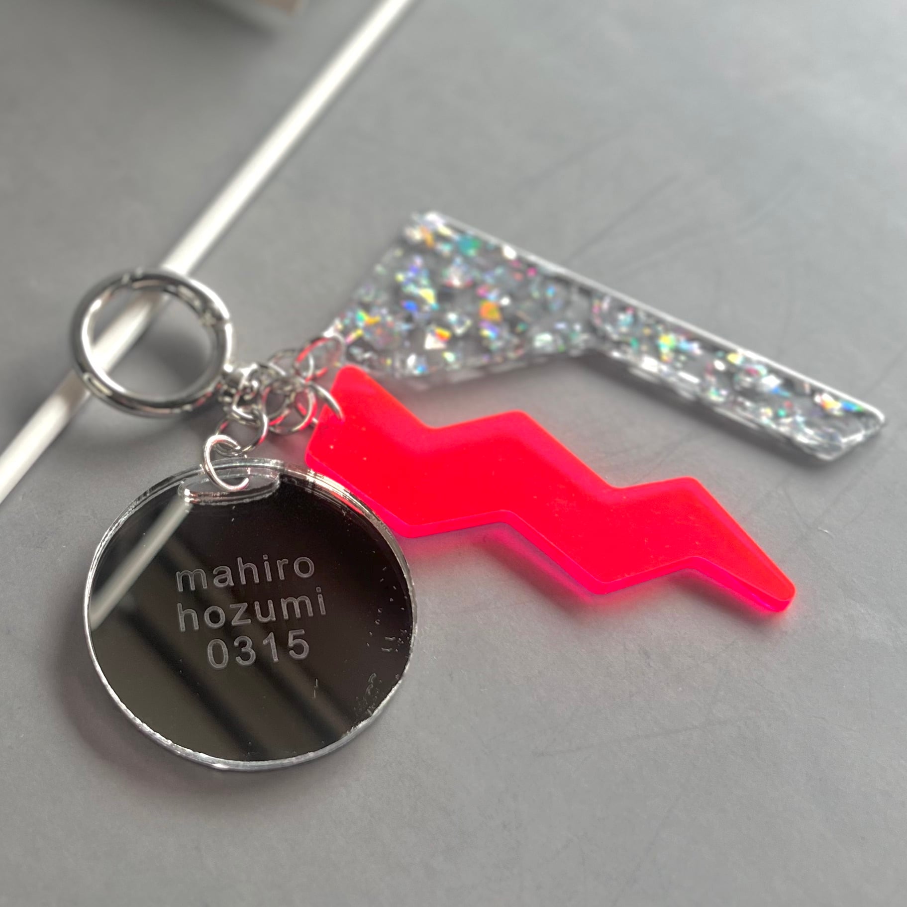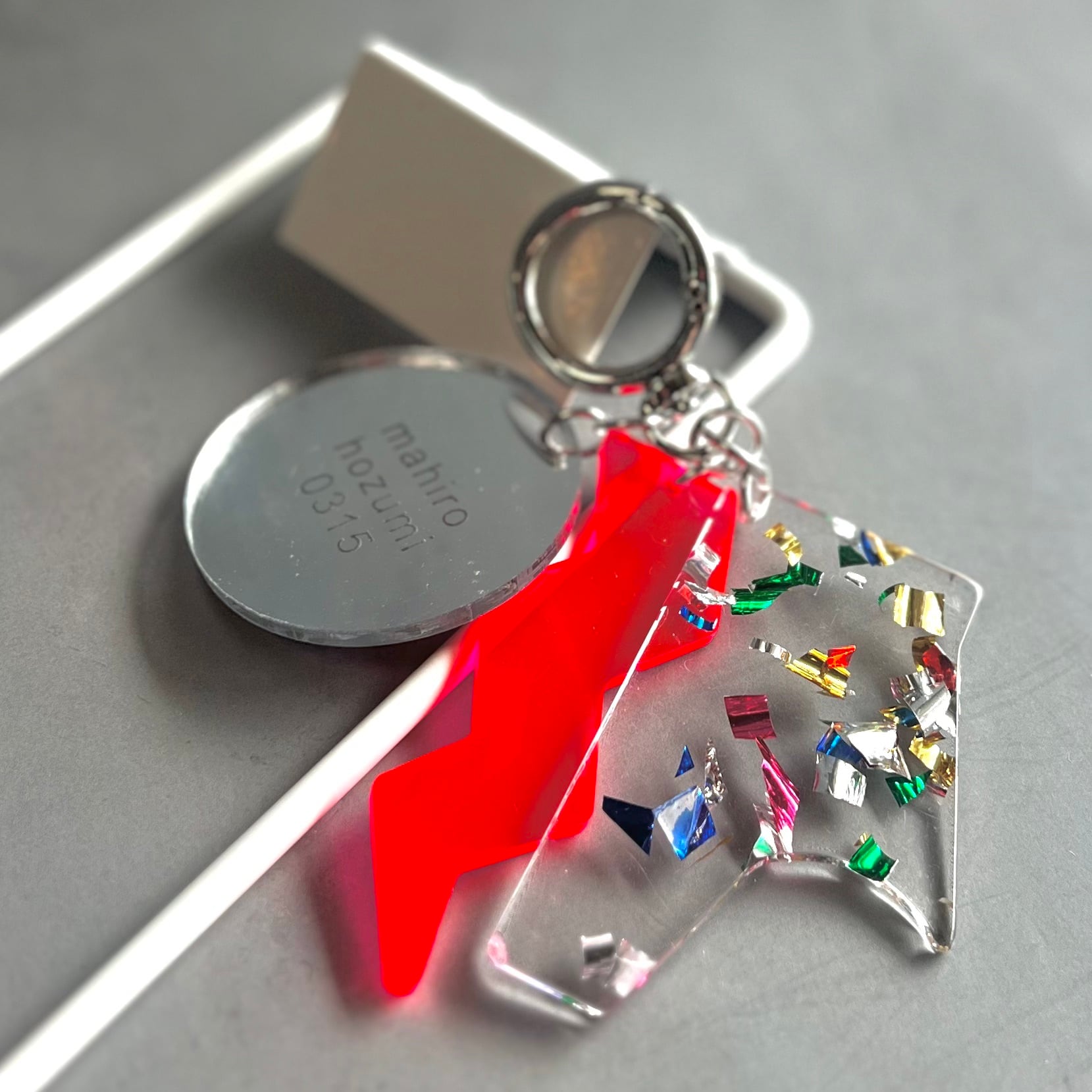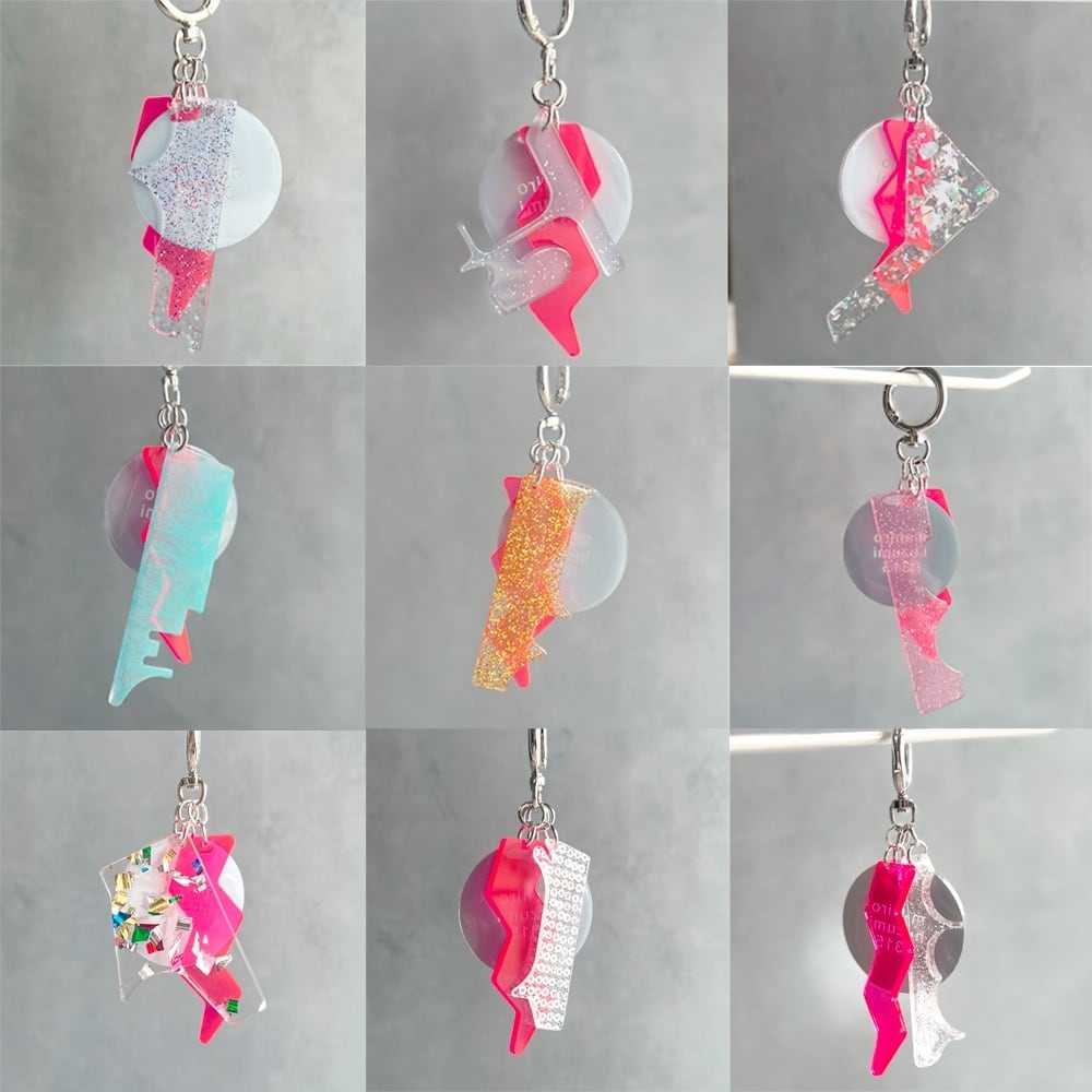 アクリル加工の工程で出てしまう端材を、チャームとして再利用しています。