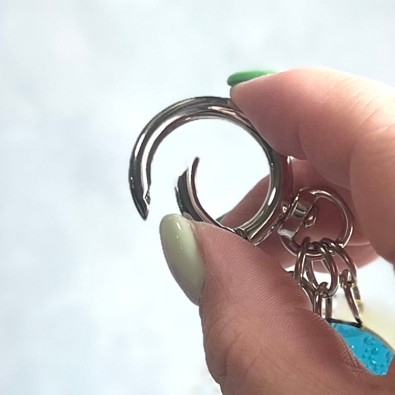 三連チャーム、カラビナ付き。